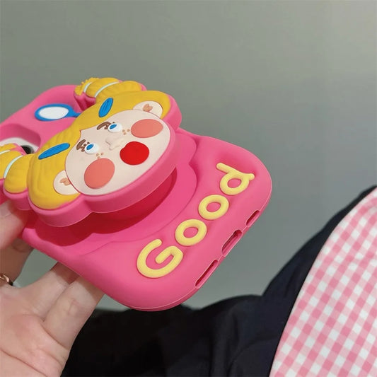 Cartoon Cute Monsters Soft Silicone Cover With Holder Phone Case