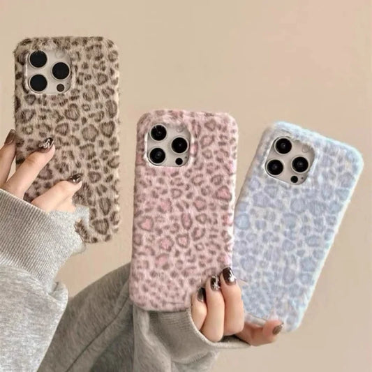 Winter Luxury Leopard fluffy Hand Warmer Plush Case For iPhone