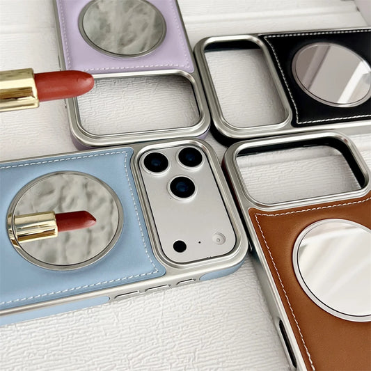 Wireless Charging Magnetic Mirror Leather Phone Case For iPhone