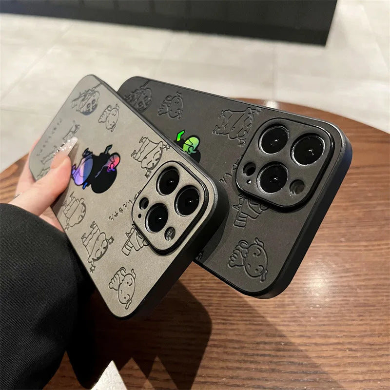 Cartoon Crayon Shin-chan Leather Texture Laser Phone Case For iPhone