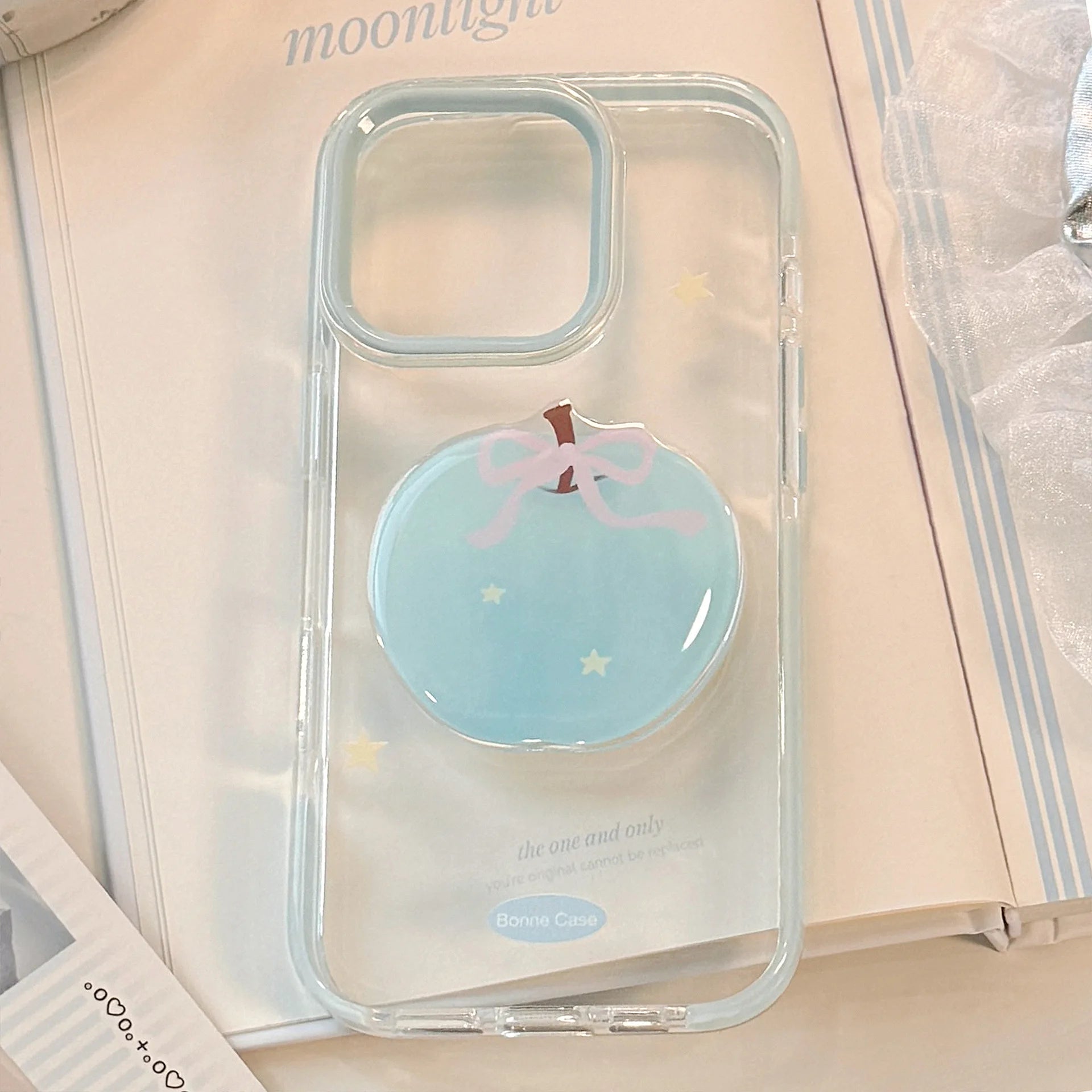 Korean 3D Cute Cartoon Blue Apple Star Soft Phone Case For iPhone